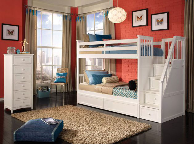 Определите правильно размер кровати, который будет подходить для детской спальни. Если кровать будет очень высокой, то есть риск того, что дети будут ударяться о потолок. Производя замеры комнаты и сопоставляя габариты выбранной кровати, учитывайте наличие возможных выступов в виде лестницы или ящиков.