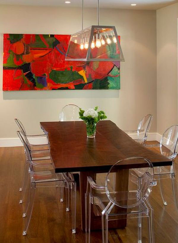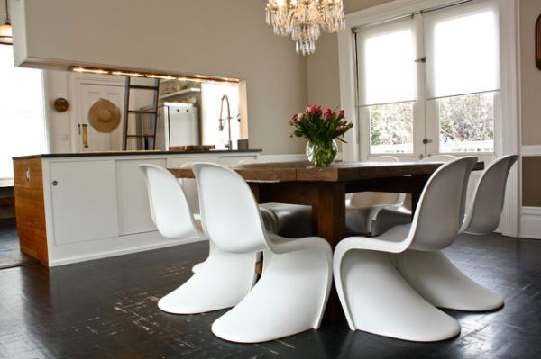Пластиковые стулья могут также превосходно смотреться в обеденной зоне, особенно если её дизайн близок к современному. Сегодня производители создают удивительные модели за счёт придания пластику оригинальных форм, использования множества вариаций цветов, сочетания с другими материалами.