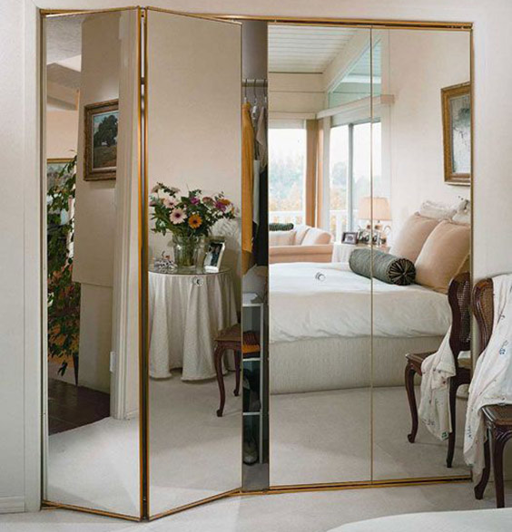 В распахнутом виде такой тип шкафа требует довольно много пространства, поэтому для слишком маленькой спальни может не подойти.