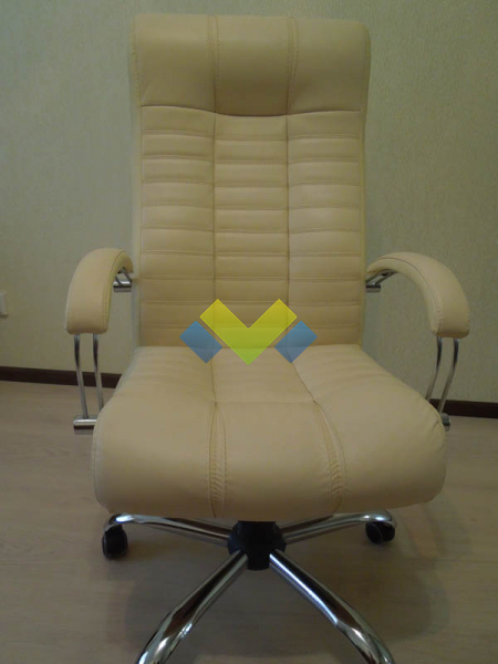 Кресло для руководителя Атлант хром может обиваться сразу несколькими цветами, также можно нанести логотип, вышивку или любой другой паттерн, можно даже украсить стразами.