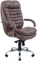 Несмотря на демократичную стоимость, внешний вид изделия красноречиво говорит о статусности. Элегантная кожаная обивка (натуральная или синтетическая) или приятный на ощупь велюр гармонируют с блестящим хромом на крестовине и подлокотниках. Мягкие сиденье и спинка с утолщением в области подголовника снимают напряжение в мышцах, обеспечивая максимальное удобство.