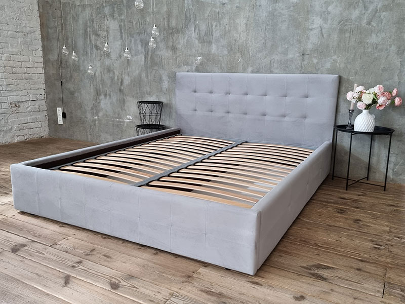 • при выборе комплектации с подъемным механизмом в кровати будет идти цельносварной металлический каркас со встроенными внутрь широкими ламелями, благодаря эту полностью отсутствует проблема их выпадения.