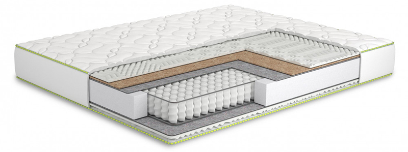 Кокосовая койра. Натуральный материал из волокон ореха кокоса. Не имеет питательной среды для жизнедеятельности болезнетворных бактерий, придает матрасу жесткости.
