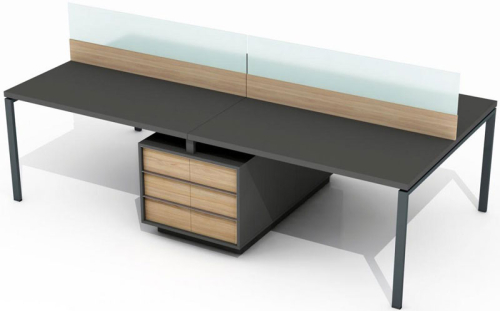 Каркас Trio имеет П-образные опоры из прямоугольной стальной трубы с регулировкой высоты, за доплату - замок верхнего ящика, центральный замок, заглушка для проводов