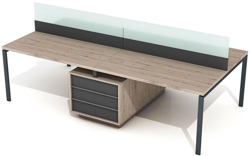 Каркас Trio имеет П-образные опоры из прямоугольной стальной трубы с регулировкой высоты, за доплату - замок верхнего ящика, центральный замок, заглушка для проводов